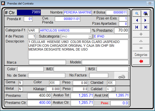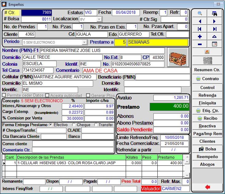 A continuacion se presenta un ejemplo de la pantalla de contratos.